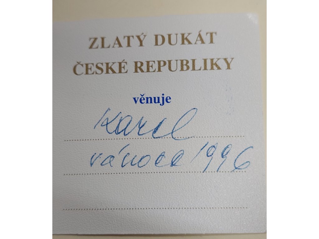 Česká republika navázala po svém vzniku na tradici dukátových ražeb jako symbolu hodnoty, kontinuity a slavnostních životních okamžiků. Dukát, historicky vnímaný jako reprezentativní zlatá mince, byl v moderním pojetí využit také pro pamětní a dárkové emise s osobním a rodinným významem.