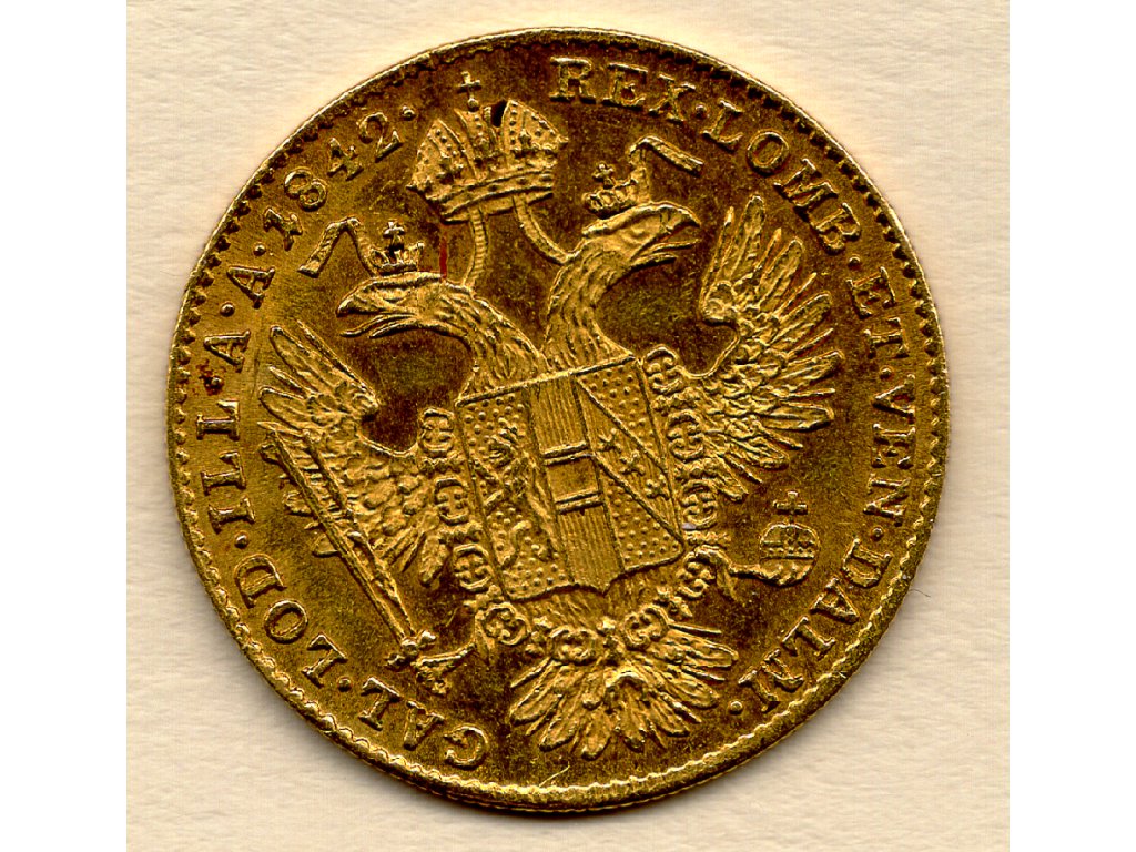 Mincovna ve Vídni byla v 19. století jedním z nejvýznamnějších evropských center výroby zlatých mincí. Dukáty Ferdinanda V. se vyznačují čistotou ryzího zlata (986/1000) a vynikající rytinou. Averz nese portrét císaře s vavřínovým věncem, symbolem moudrosti a císařské důstojnosti, doprovázený opisem s tituly panovníka. Reverz zobrazuje tradiční dvouhlavého orla s korunou a znakem habsburských držav, doplněný letopočtem 1842 a značkou mincovny „A“ pro Vídeň.