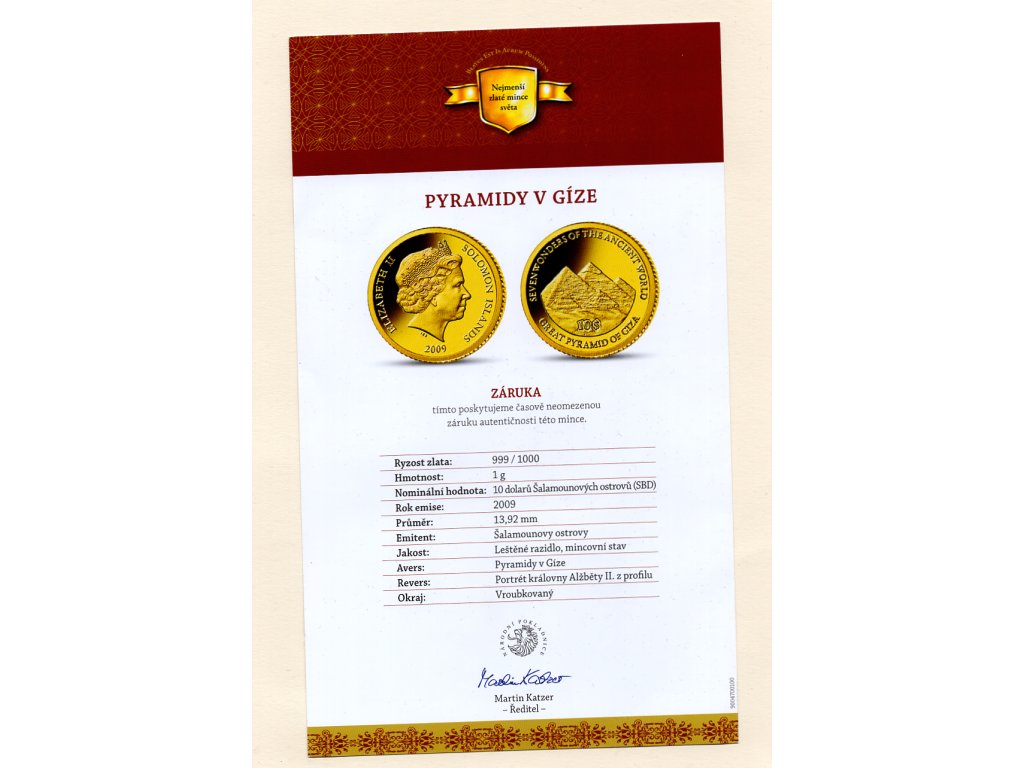 Šalamounovy ostrovy – Zlatá mince 10 dolarů, Pyramidy v Gíze 2009