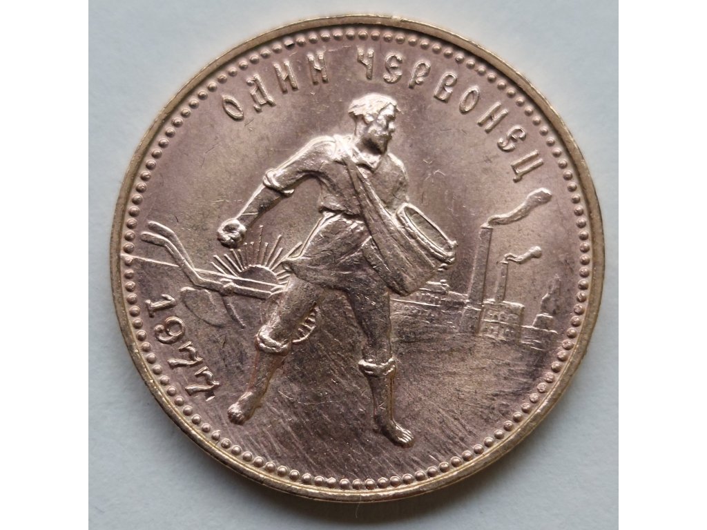 Sovětský svaz – 1 červoněc (10 rublů), zlatá ražba s motivem dělníka 1977